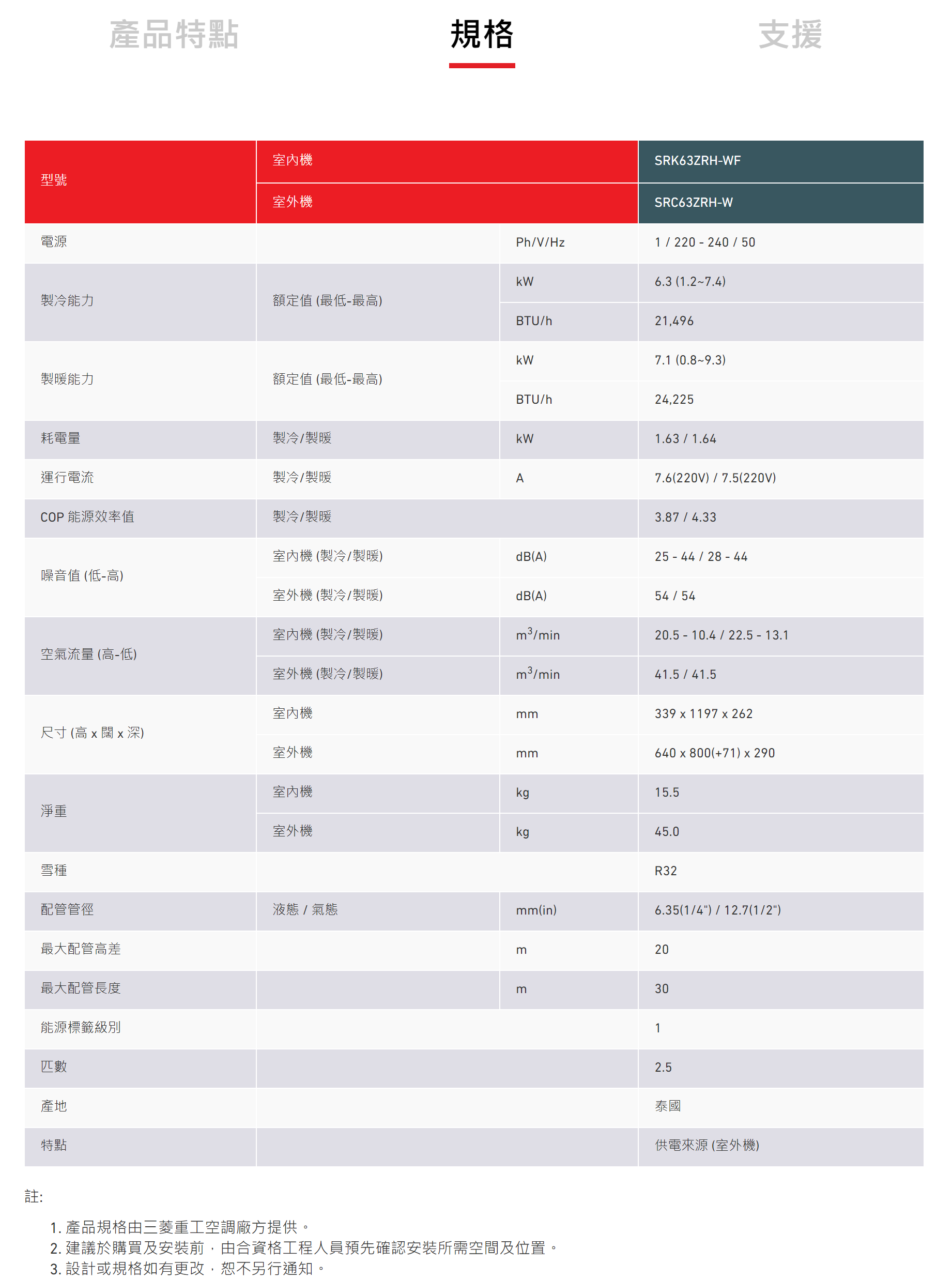 MITSUBISHI HEAVY INDUSTRIES 三菱重工 SRK63ZRHWF 二匹半 變頻冷暖掛牆分體式冷氣機 (附遙控)