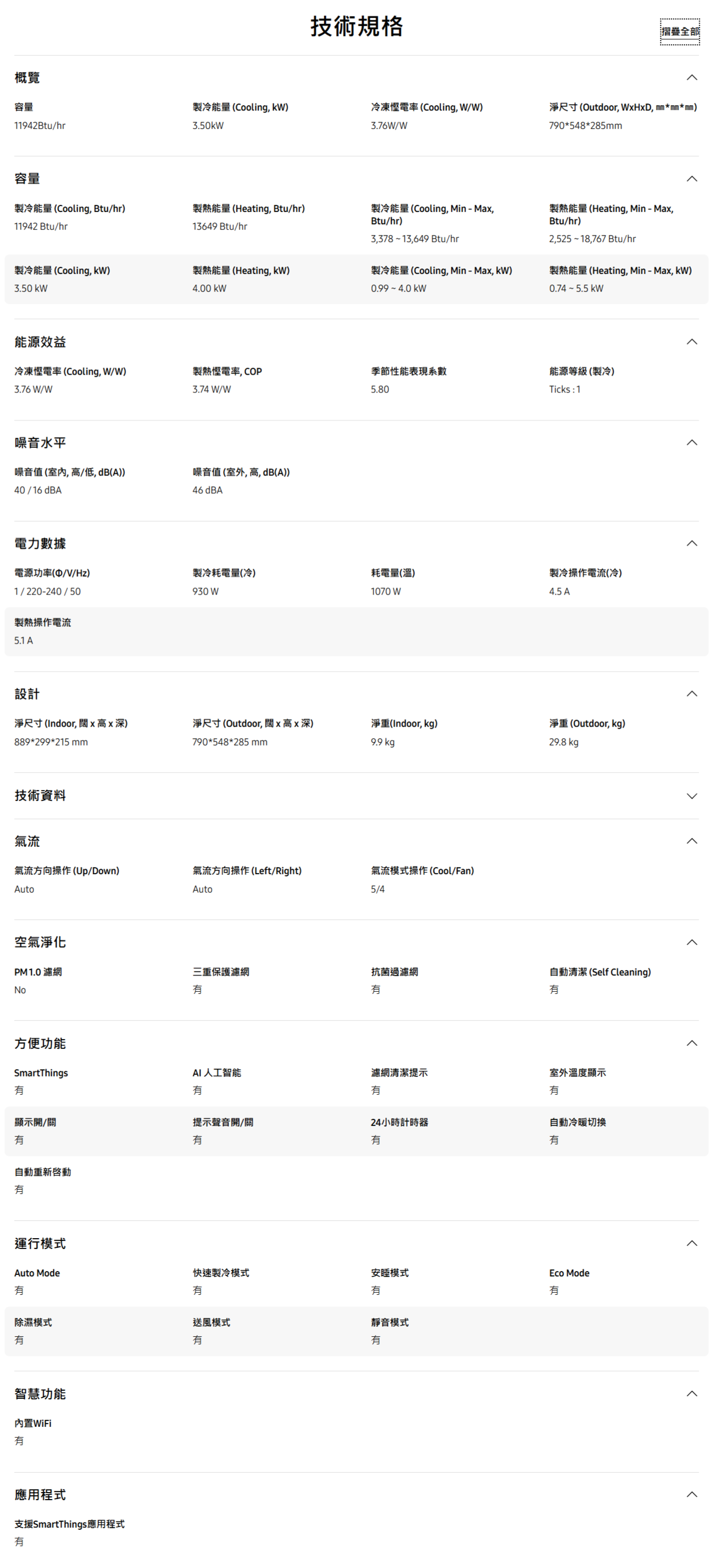 SAMSUNG 三星 AR12TXEAAWKNSH 一匹半 變頻冷暖型 掛墻分體式冷氣機