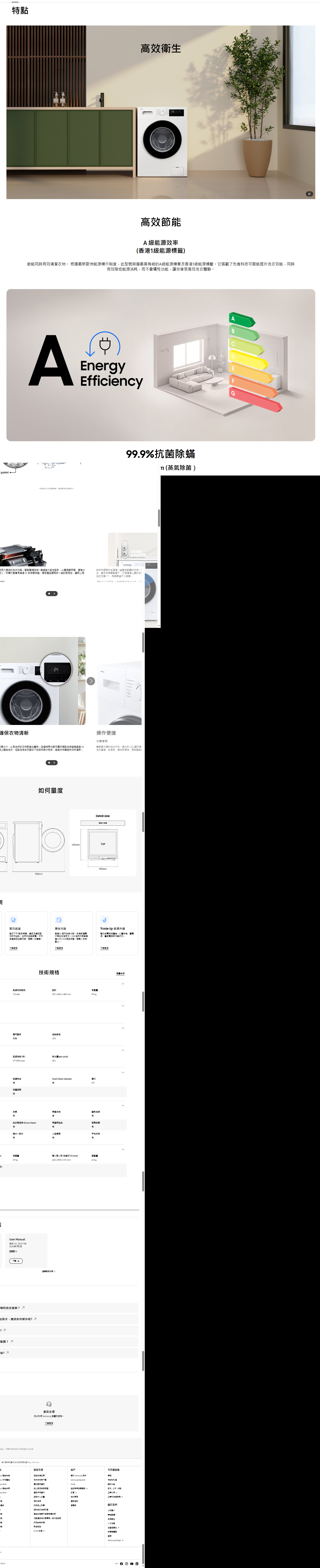SAMSUNG 三星 WW80FG3M05TWSH 變頻前置式洗衣機 (8 公斤,1400 轉/分鐘)